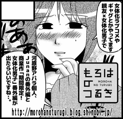 2/12コミティア119無敵スター様(ね14b)にて「期間限定!女体化男子」の書下ろし4コマつきチラシ配布していただきます! A4両面カラー二つ折りで前回よりちょっぴりグレードアップ。